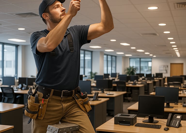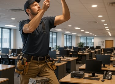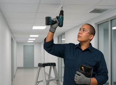 Replacing floor and ceiling tiles to maintain a clean, professional look.